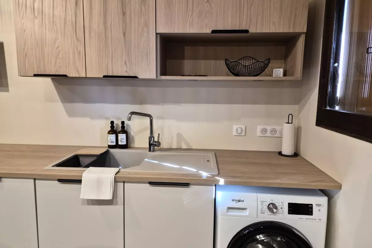 Die Küche ist komplett ausgestattet mit allem, was Sie zur Zubereitung Ihrer Mahlzeiten benötigen: Kaffeemaschine, Backofen, Mikrowelle, Geschirrspüler und Kühlschrank. Ein Raclettegrill und eine Grillplatte stehen Ihnen ebenfalls zur Verfügung, um gesellige Stunden miteinander zu verbringen.